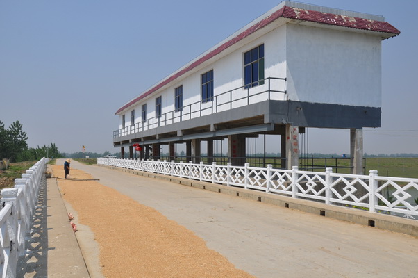 八里河閘  潁上縣八里河閘位于沙潁河潁右右堤,新建八里河閘為6孔涵洞,三孔一聯。控制流域面積483km2,5年一遇設計除澇流量264m3/s,垂直水流方向總